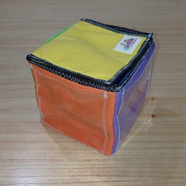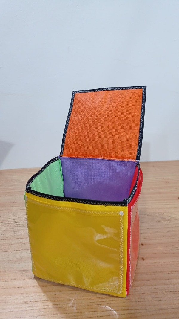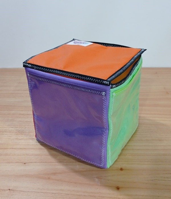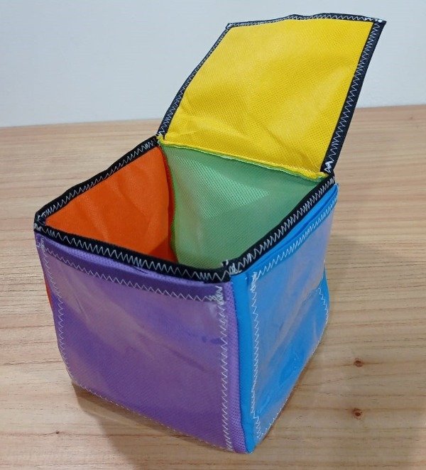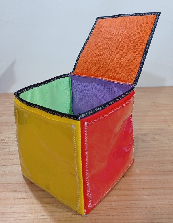 La caja esta confeccionada de tela con goma espuma de alta densidad, lo que permite que tenga cuerpo.